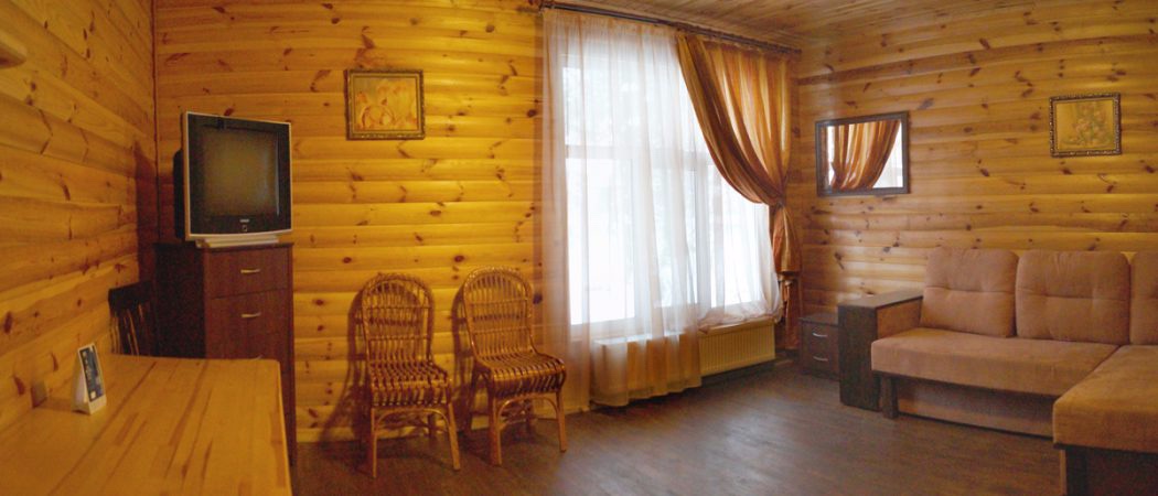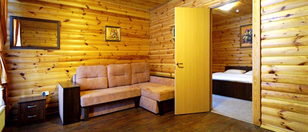 Двухкомнатный сруб, который может вместить от двух до четырех человек.
