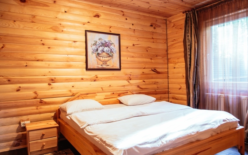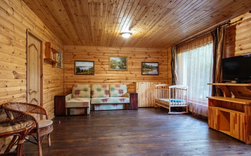 Деревянный сруб, рассчитанный на шикарный отдых для 2-4х человек. Каждый из них представляет собой большой двухкомнатный гостиничный номер «деЛюкс».