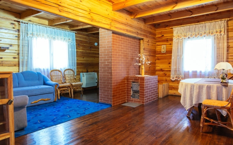 В доме: на первом этаже — мягкий уголок, плетёная мебель, телевизор и DVD(в клубе имеется своя коллекция фильмов).